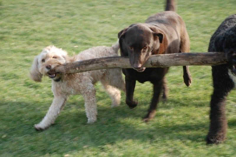 Dogs are encouraged to run, romp, chase balls, play fetch and interact with each other. A staff member trained to facilitate safe and effective socialization constantly supervises each playgroup to ensure that play doesn't get too rough and to reinforce basic obedience commands. You will be amazed at how calm and relaxed your dog will be after each session. Although ideal for puppies and young dogs, a daily playgroup is also well suited for an adult dog that needs more exercise and mental stimulation than a walk can provide. Playgroup is an excellent way for your dog to receive healthy outdoor exercise while also building and strengthening the important social skills that will guide them for a lifetime.