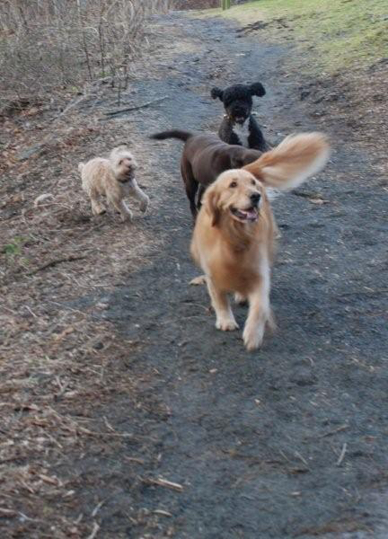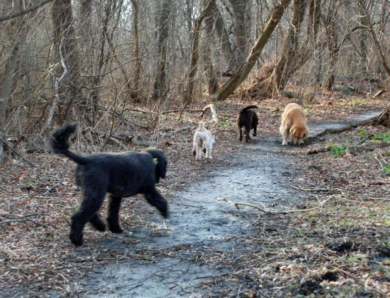 Your dog is brought to an area state park or conservation land for a guided off-leash run with other athletic dogs. Your dog will explore open fields, streams and wooded areas while actively socializing and receiving excellent exercise. Before attending, dogs must participate in at least one playgroup session to assess social skills and demonstrate the ability to respond to commands. A daily adventure walk will give your dog exactly what it needs: wholesome exercise, active exploration, and membership in a very special pack.